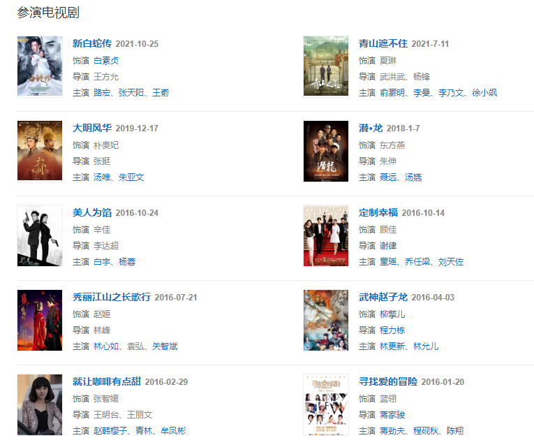 2021年7月11日,領(lǐng)銜主演的年代勵志情感劇《青山遮不住》首播;10月25日,與路宏共同主演的古裝愛情神話劇《新白蛇傳》開播 。