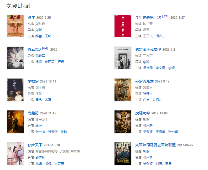 代表作品:甄嬛傳、陸貞傳奇、加油愛人、青云志、軍師聯(lián)盟、獨步天下