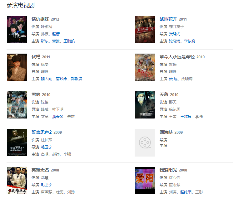 2012年主演年代家族革命大劇《情仇姐妹》;在電視劇《伏弩》扮演一名女特工。