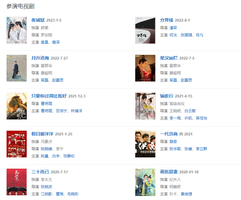 2021年1月25日,主演的電視劇《假日暖洋洋》在愛奇藝和北京衛(wèi)視播出;參演電視劇《驪歌行》。