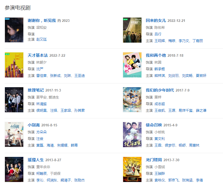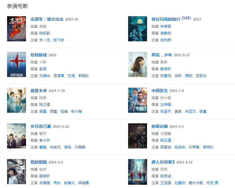 業(yè):演員代表作品唐山大地震、唐人街探案、快把我哥帶走、我的姐姐、你好,之華、盛夏未來(lái)、小別離