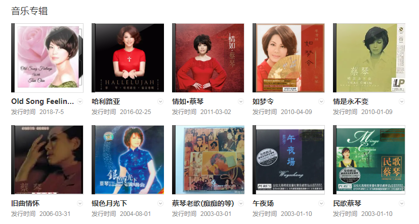 蔡琴(Tsai Chin),19571222日出生于臺灣省高雄市,祖籍湖北省仙桃市,中國臺灣女歌手、歌舞劇演員、主持人。