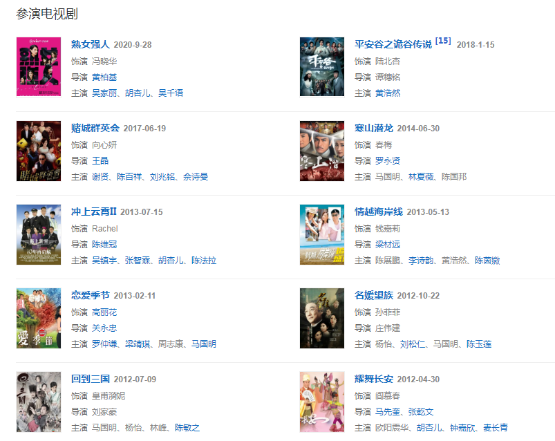 2020年,出演電視劇《熟女強人》飾演馮曉華 。