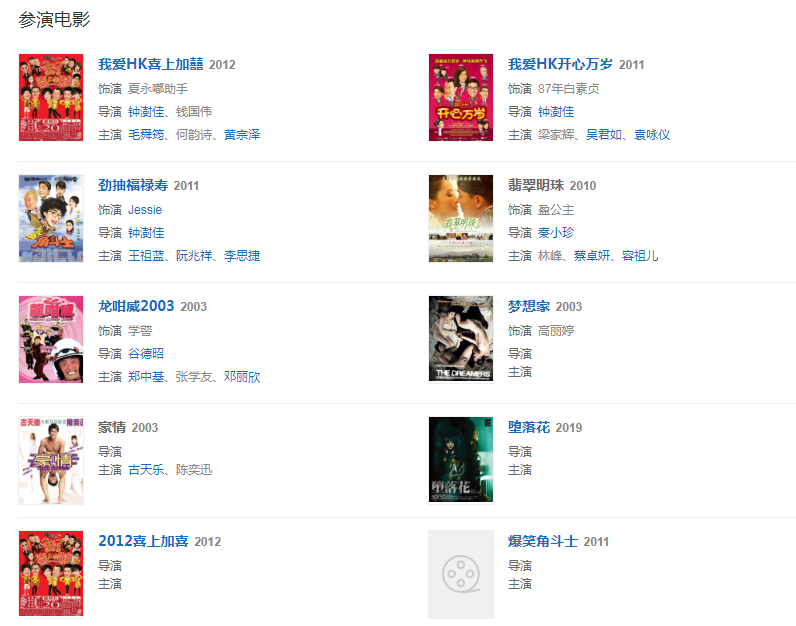 2010年,8月,在電影《翡翠明珠》中出演“盈公主”一角  ;201110月,參演古裝臺慶劇《萬凰之王》中飾演成妃 ;1031日,在年處境劇集《結(jié)·分@謊情式》中飾演林菁華 。