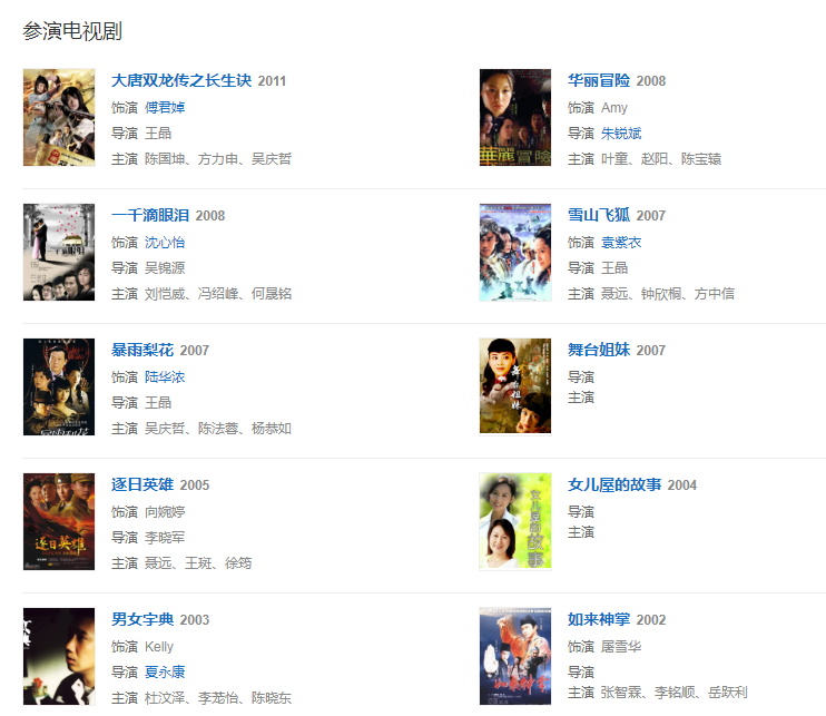 代表作品大話西游之大圣娶親、射雕英雄傳、蕭十一郎、雪山飛狐、逃學(xué)威龍2、二次初戀