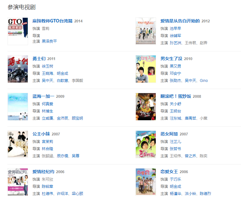 代表作品梁山伯與茱麗葉、愛的城堡、不要不要、話說夏娃、翻滾吧,蛋炒飯、愛情是從告白開始的