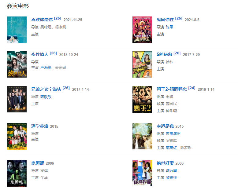 代表作品:小寶與康熙、我和僵尸有個約會3、情陷夜中環(huán)2、親愛的,回家