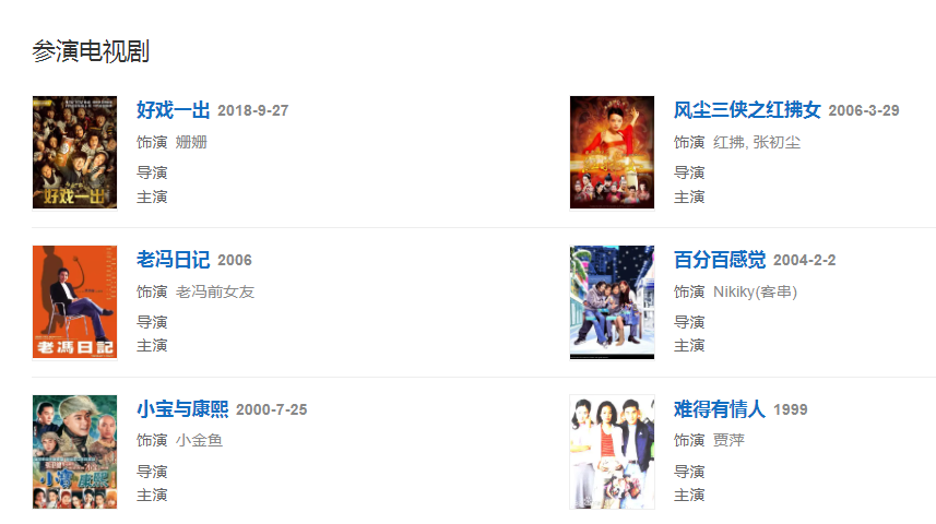 代表作品:色情男女、玻璃之城、千禧曼波、最好的時光、非誠勿擾、西游·降魔篇、刺客聶隱娘、一步之遙