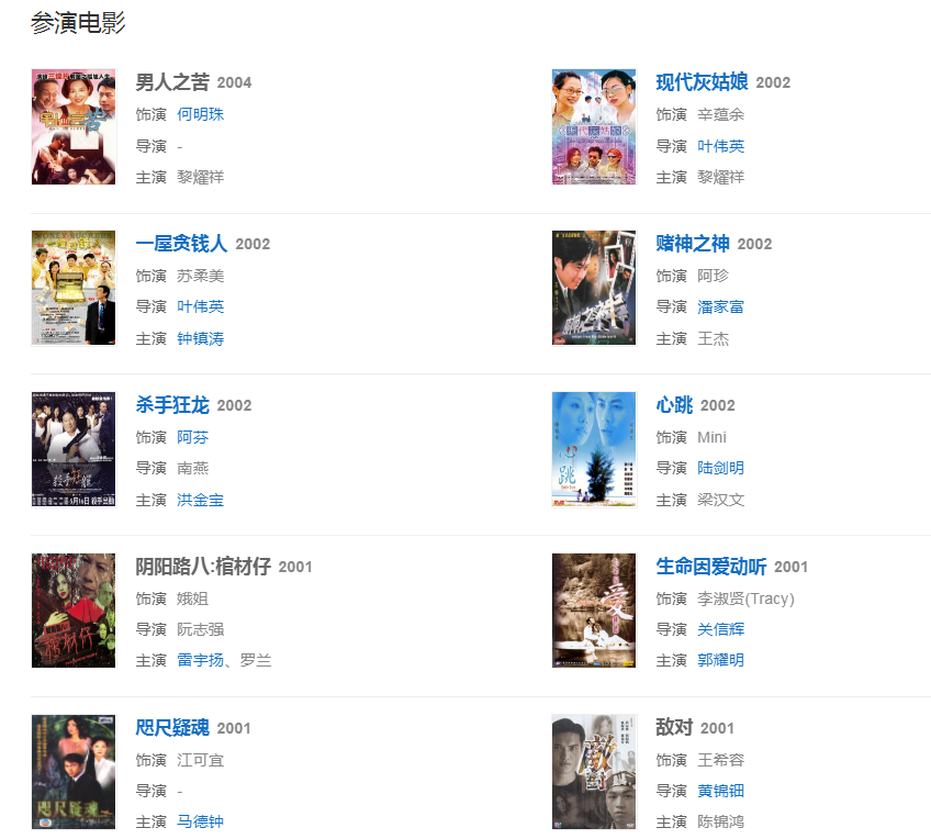 2001年,參演電影《生命因愛動聽》,飾演與癌癥頑強(qiáng)抗?fàn)?,用自身的愛心去感染身邊的每一個人的Tracy李淑賢。