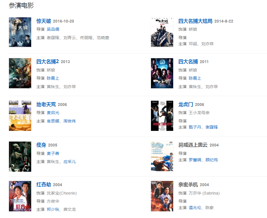代表作品:《巾幗梟雄》、金枝欲孽、《我和春天有個(gè)約會(huì)》