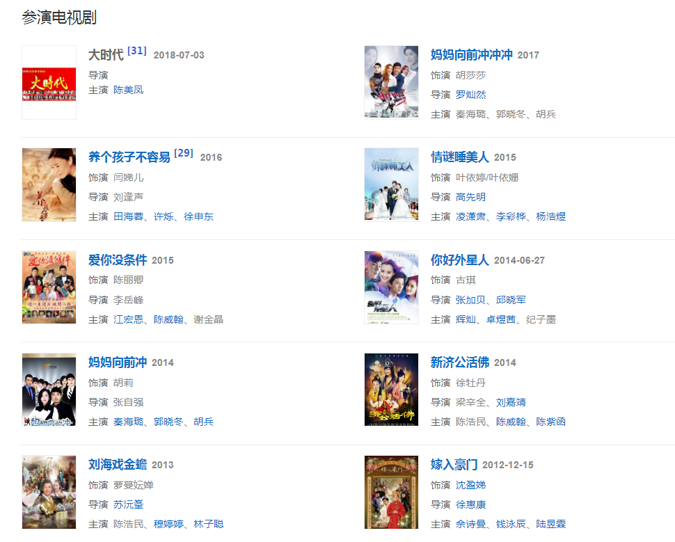 代表作品:九指新娘、再見阿郎、風(fēng)云、娘家的故事、大醫(yī)院小醫(yī)師、情謎睡美人