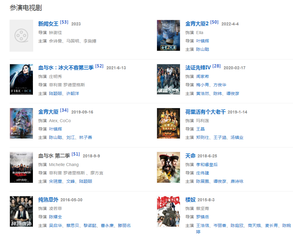 2019年,其搭檔陳山聰主演的TVB懸疑劇《金宵大廈》播出。