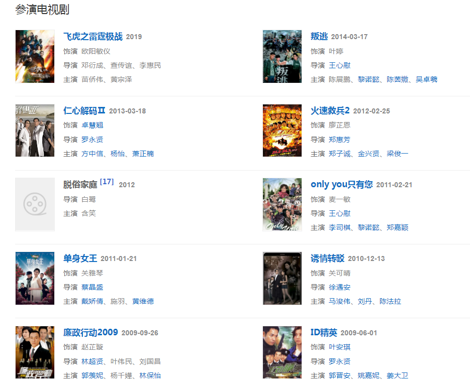 代表作品:非常突然、暗戰(zhàn)、仁心解碼2、法證先鋒、衛(wèi)斯理