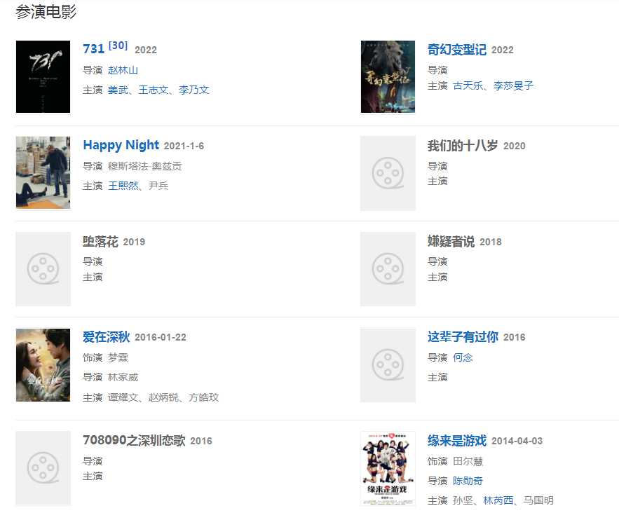 2016年主演的愛情電影《愛在深秋》上映;加盟何念導演的電影《這輩子有過你》  。