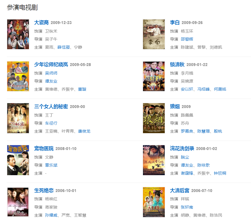 2009年主演電視劇《鎖清秋》和《大瓷商》。