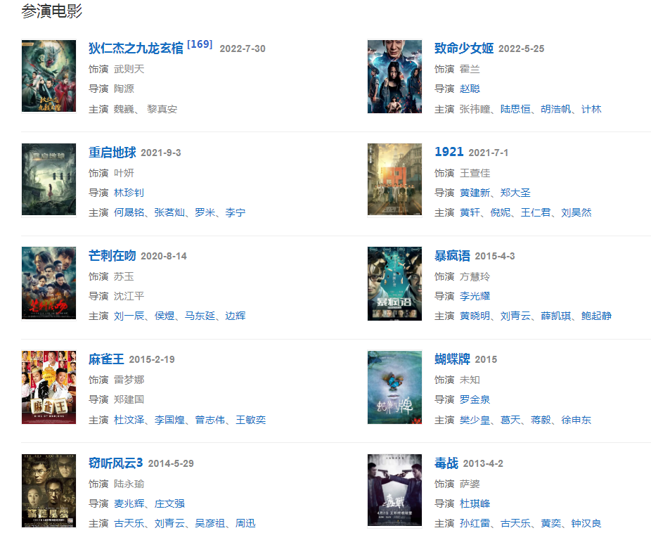 代表作品:竊聽風云3、毒戰(zhàn)、國色天香、意外、天下第一