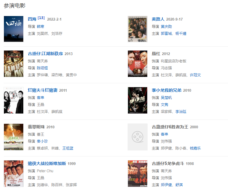 2013年,在電影《古惑仔:江湖新秩序》中再次飾演蔣天養(yǎng)。