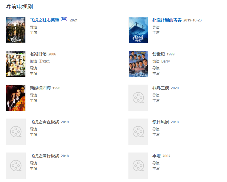 1996年,主演由陳嘉上執(zhí)導(dǎo)的警匪片《飛虎》,并憑借該片獲得第16屆香港電影金像獎最佳男主角提名和第33屆臺灣電影金馬獎最佳男主角提名。