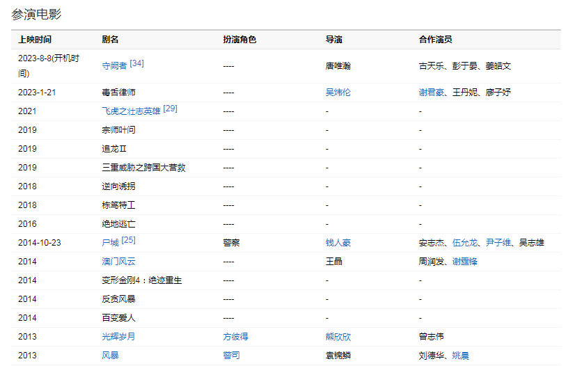 20136月,與曾志偉、黃日華、莫少聰聯(lián)合參演由熊欣欣執(zhí)導(dǎo)的動作片《光輝歲月》。12月,參演犯罪片《風(fēng)暴》。