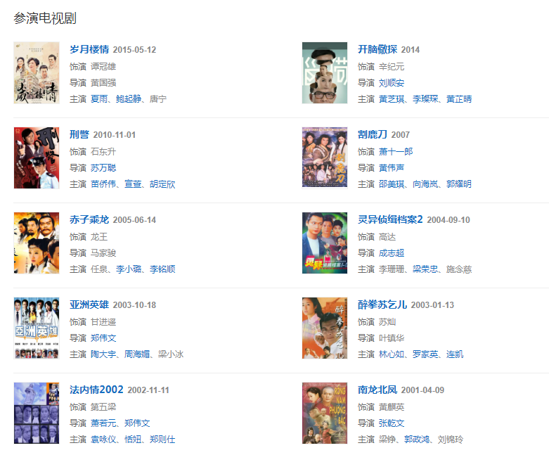1983年因在武俠劇《射雕英雄傳》中飾演郭靖一角而被中國內(nèi)地觀眾所知。1985年出演古裝劇《楊家將》。