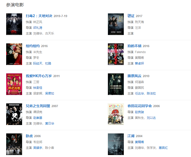 代表作品:射雕英雄傳、江湖接班人、學警雄心、學警狙擊、刑警、使徒行者