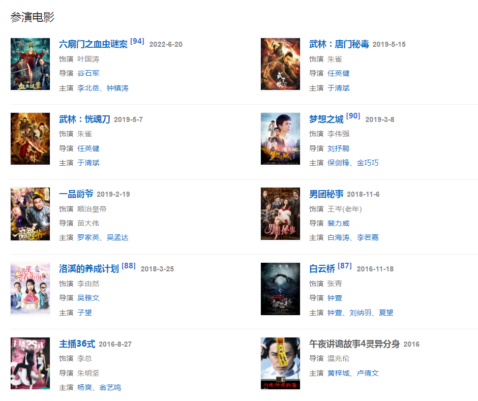 20164月,主演電視劇《楊光那些事》  ;同年,主演電影《主播36式》。