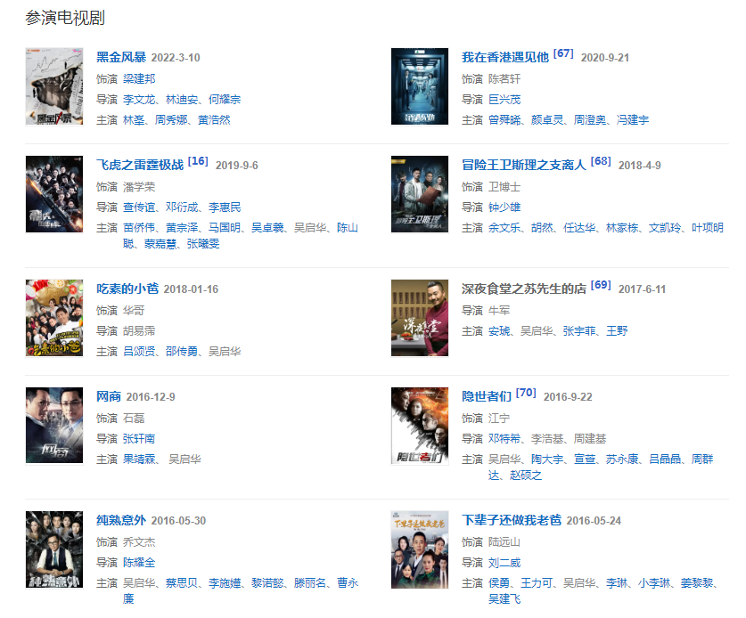 2019年9月6日參演的“飛虎”題材警匪劇《飛虎之雷霆極戰(zhàn)》在優(yōu)酷播出,在劇中飾演潘學(xué)榮。
