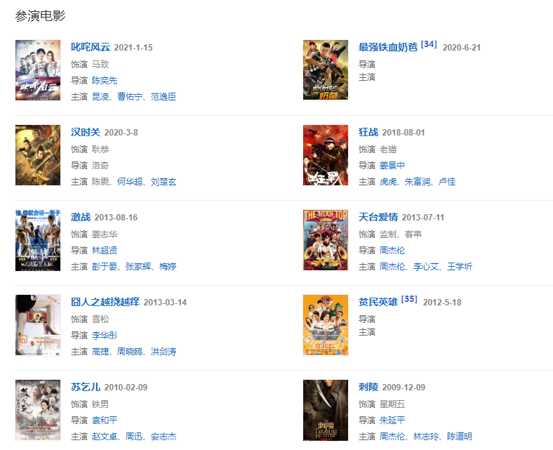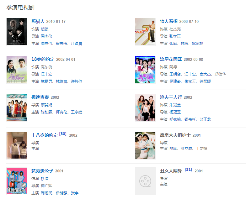 代表作品:佳家福、頭文字D、彩虹天堂、刺陵、天臺(tái)愛情、囧人之越撓越癢、超級(jí)減肥王、減出我人生、全能極限王、叱咤風(fēng)云