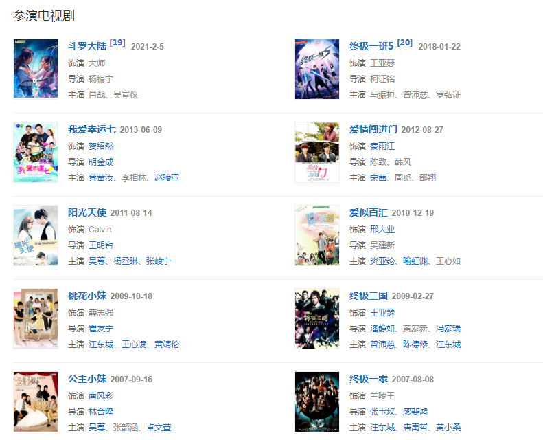 代表作品:終極一班、公主小妹、愛似百匯、愛情闖進門、斗羅大陸