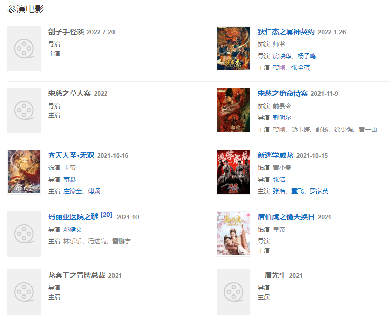 20211016日,參演的網(wǎng)絡(luò)電影《齊天大圣·無(wú)雙》在騰訊視頻全網(wǎng)獨(dú)播; 119日,參演電影《宋慈之絕命詩(shī)案》定檔在騰訊視頻獨(dú)家上線播出;參演電影《唐伯虎之偷天換日》。