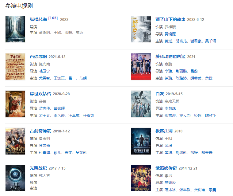 代表作品:武媚娘傳奇、歲月神偷、李小龍我的兄弟、一夜驚喜、寒戰(zhàn)、傾城之淚、歲月輕狂、一片癡、尼古拉