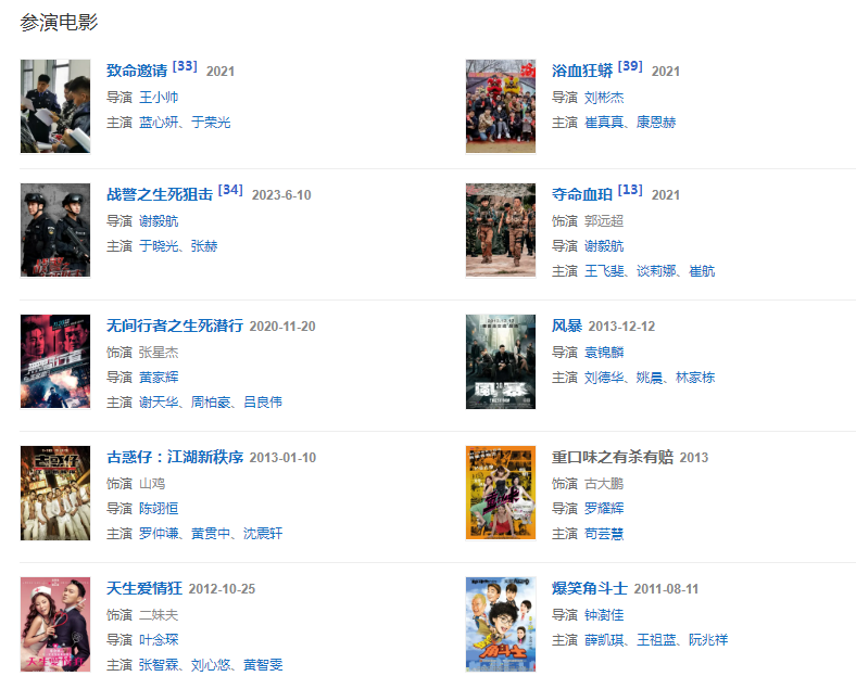 2020年,主演動(dòng)作片《奪命血珀》、《戰(zhàn)警之生死狙擊》 。