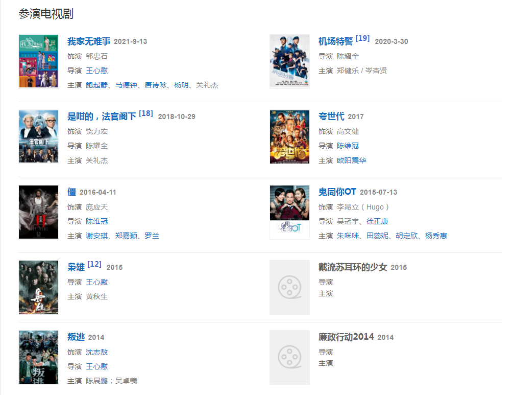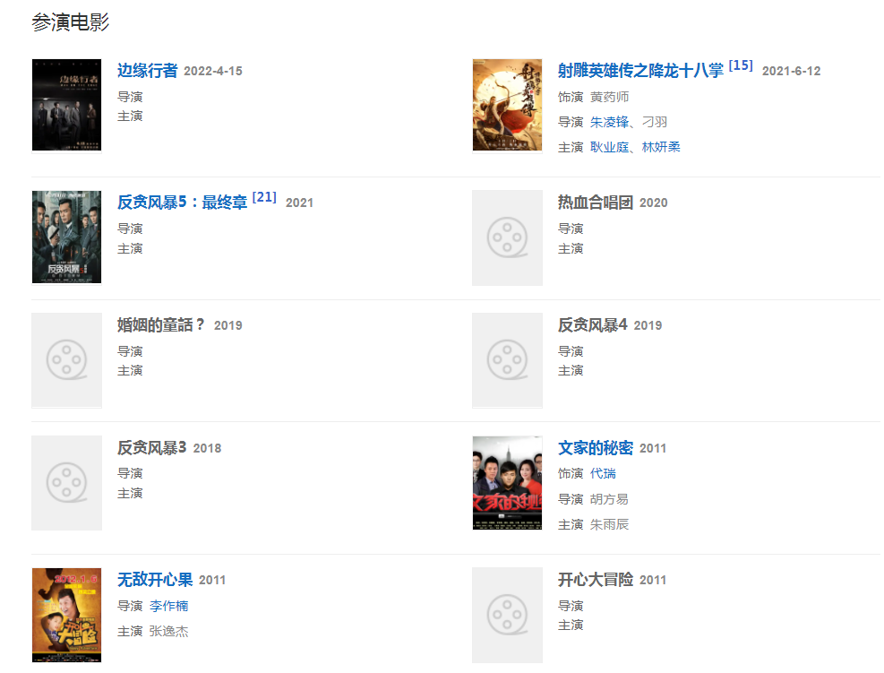 代表作品:新龍門客棧、國(guó)際刑警、小李飛刀、武當(dāng)張三豐
