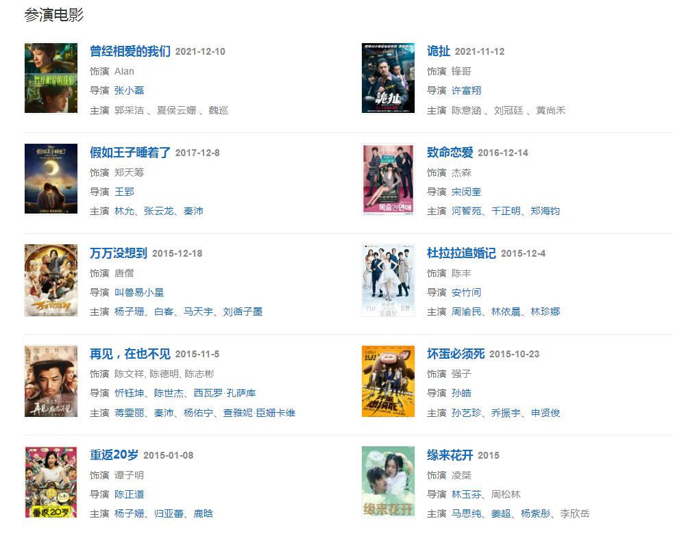 2021年11月12日,其主演的驚悚喜劇電影《詭扯》在中國(guó)臺(tái)灣上映。12月10日,與郭采潔合作主演的愛(ài)情電影《曾經(jīng)相愛(ài)的我們》上映,片中飾演營(yíng)銷(xiāo)經(jīng)理Alan 。