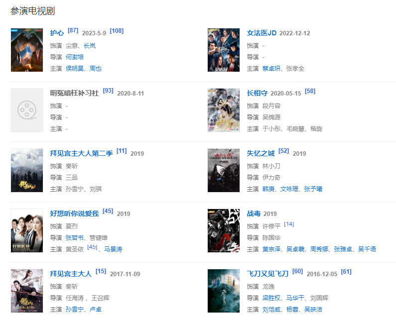 代表作品:山海經(jīng)之赤影傳說、半夜不要照鏡子、秦香蓮、追魚傳奇、拜見宮主大人、戰(zhàn)毒、長相守