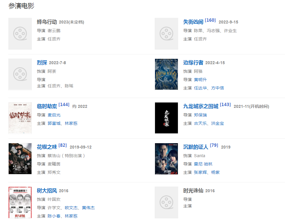 2017年憑借警匪片《樹大招風(fēng)》獲得第36屆香港電影金像獎最佳男主角獎提名;同年參加達喀爾拉力賽 。