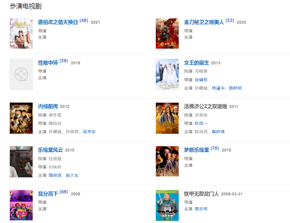 代表作品:愛的故事上集、不屬于我的淚、思前戀后、如果生命還有歌、從此我的世界多了一秒、認識你真好、我知道你在等我、烏龍闖情關(guān)、懷玉公主、奪命追捕 (2011)