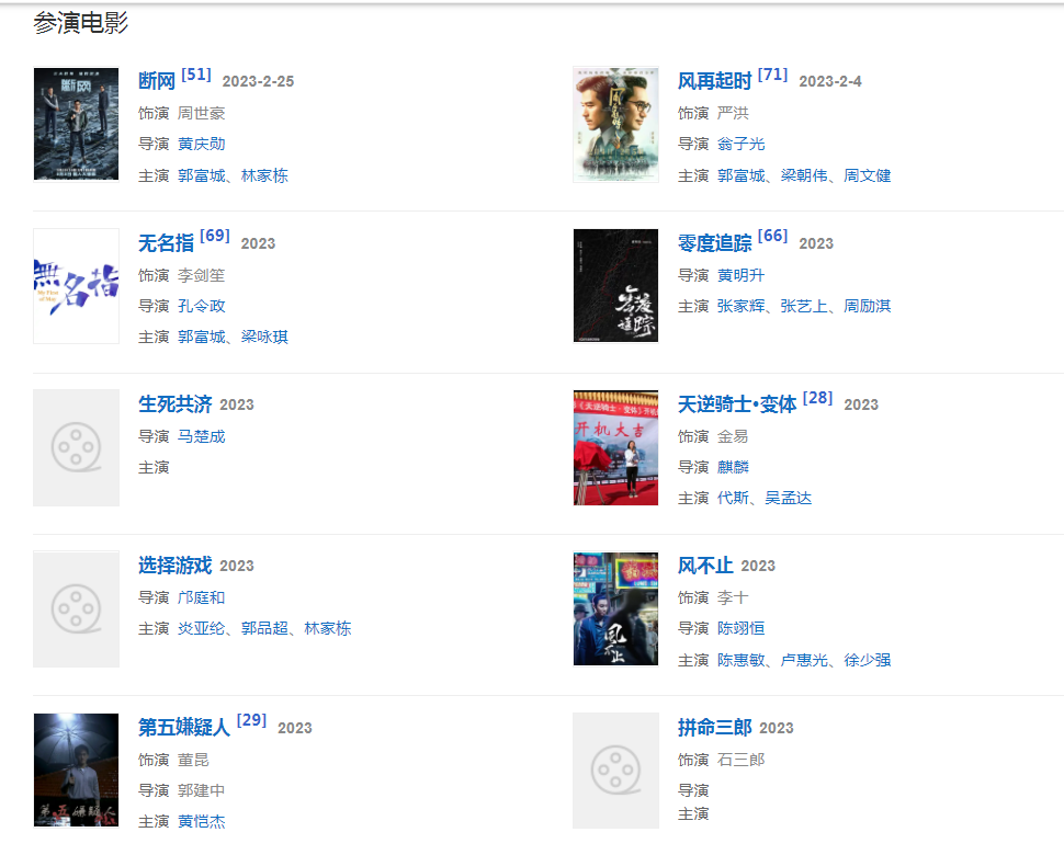 2023年2月5日,主演的電影《風(fēng)再起時(shí)》上映。3月3日,出演的電影《斷網(wǎng)》上映,并于2月25、26日和3月2日進(jìn)行點(diǎn)映。