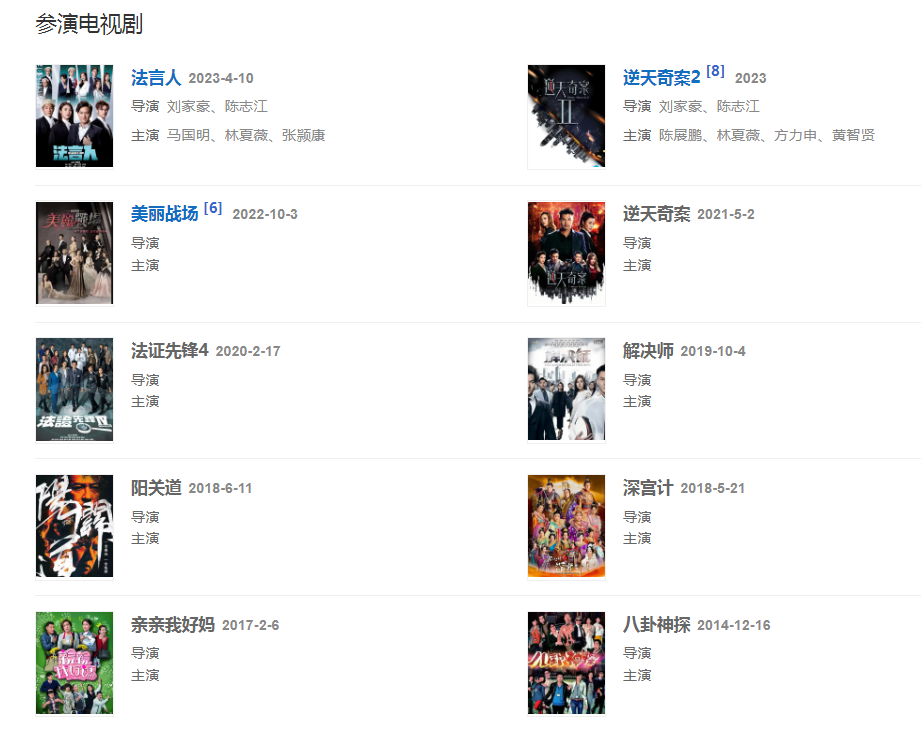 202129日,與林盛斌共同主持的玄學(xué)清談節(jié)目《師父有請》在myTV Gold上架播出202153日,參演電視劇《逆天奇案》首播